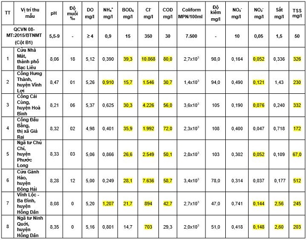 Diễn biến tình hình chất lượng nguồn nước mặt tháng 11/2022 trên địa bàn tỉnh Bạc Liêu - stnmt