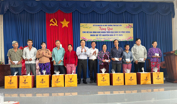 Sở Tài nguyên và Môi trường tổ chức chúc tết các gia đình chính sách, hộ nghèo tại xã Vĩnh Hưng - stnmt
